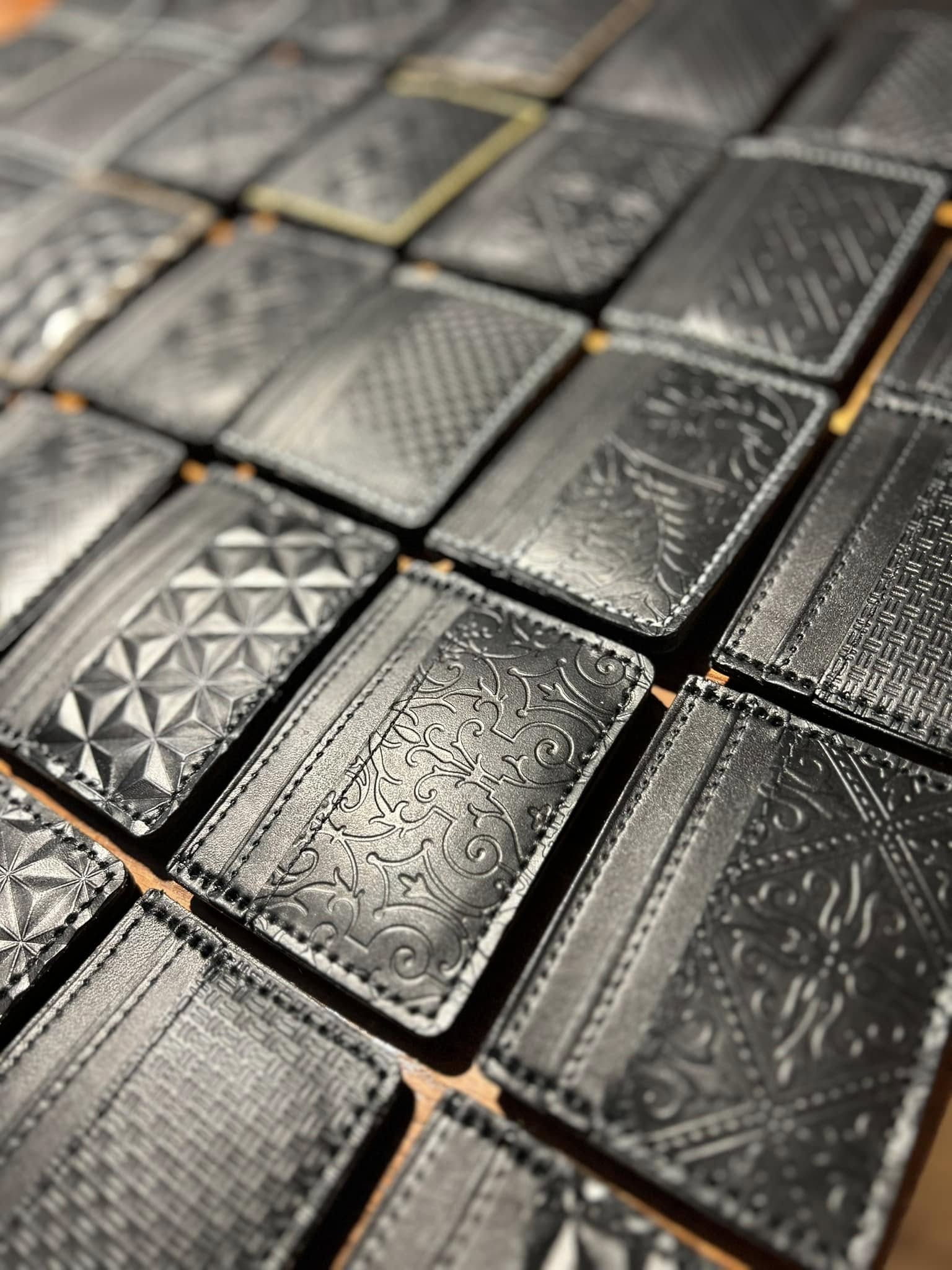 Our leather products start their journey at local tanneries where we carefully hand-select each hide. This commitment to local sourcing ensures the finest materials for our creations. We meticulously choose hides that not only meet our standards for durability and texture but also possess unique characteristics. These distinctive hides are transformed into one-of-a-kind products, embodying our philosophy of quality through attention to detail. Explore these exclusive items on our website and discover a unique piece of craftsmanship.